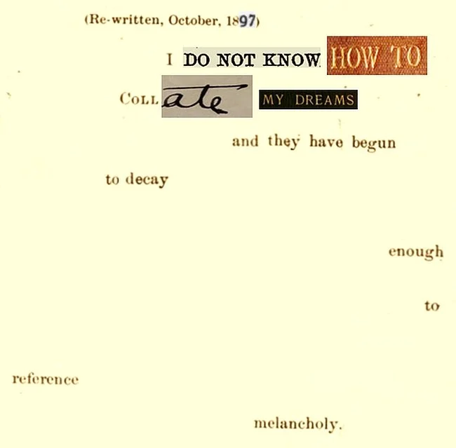 It holds everything that was found, blacked out, scribbled over, finished, unfinished, discarded. It all counts.